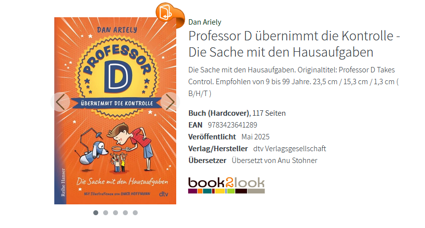 Ich empfehle das Buch an Kinder, die Hausaufgaben hassen. Der Hauptcharakter ist David und seine Eltern nennt er das Management. David ist auch bekannt als Professor D und Dot ist David’s Roboterhund. Amit ist David’s großer Bruder und seine Schwetser heisst Neta. Er hat auch ein bester Freund genannt Moran. David soll Hausaufgaben machen bevor er am nächsten Tag in die Schule muss. Mit Hilfe seiner Roboterhund versucht er die Hausaufgaben nicht zu machen.